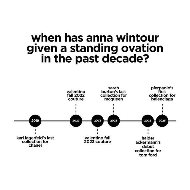 We have to upgrade the Wintour standing ovation metrics. She was up as many time as I was this season!
